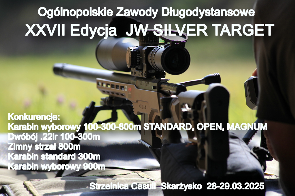 Zapraszamy wszystkich sympatyków strzelań długodystansowych na kolejną XXVII Edycję Zawodów JW SILVER TARGET, które odbędą się w dniach 28.03.2025( piątek-trening)-29.03.2025( sobota-zawody) na strzelnicy Casul”ll Mesko w Skarżysku.